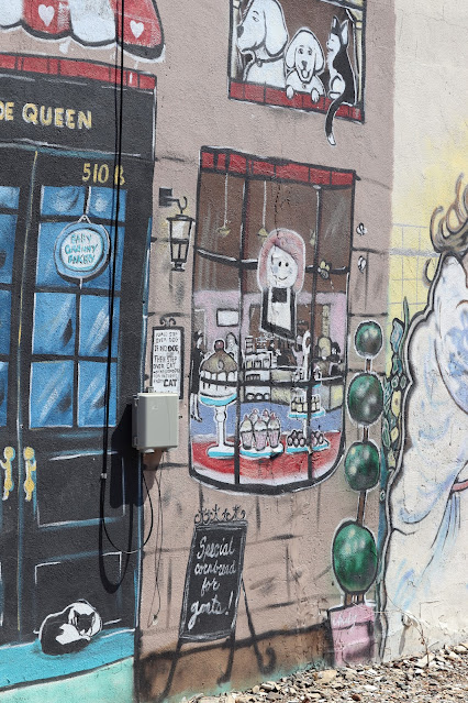 These are delightful murals. The artist is so talented. I especially like the girl with the red flowers in her hair, and the windows with the flowers. Thanks for sharing.A happy October week to you.~Sheri